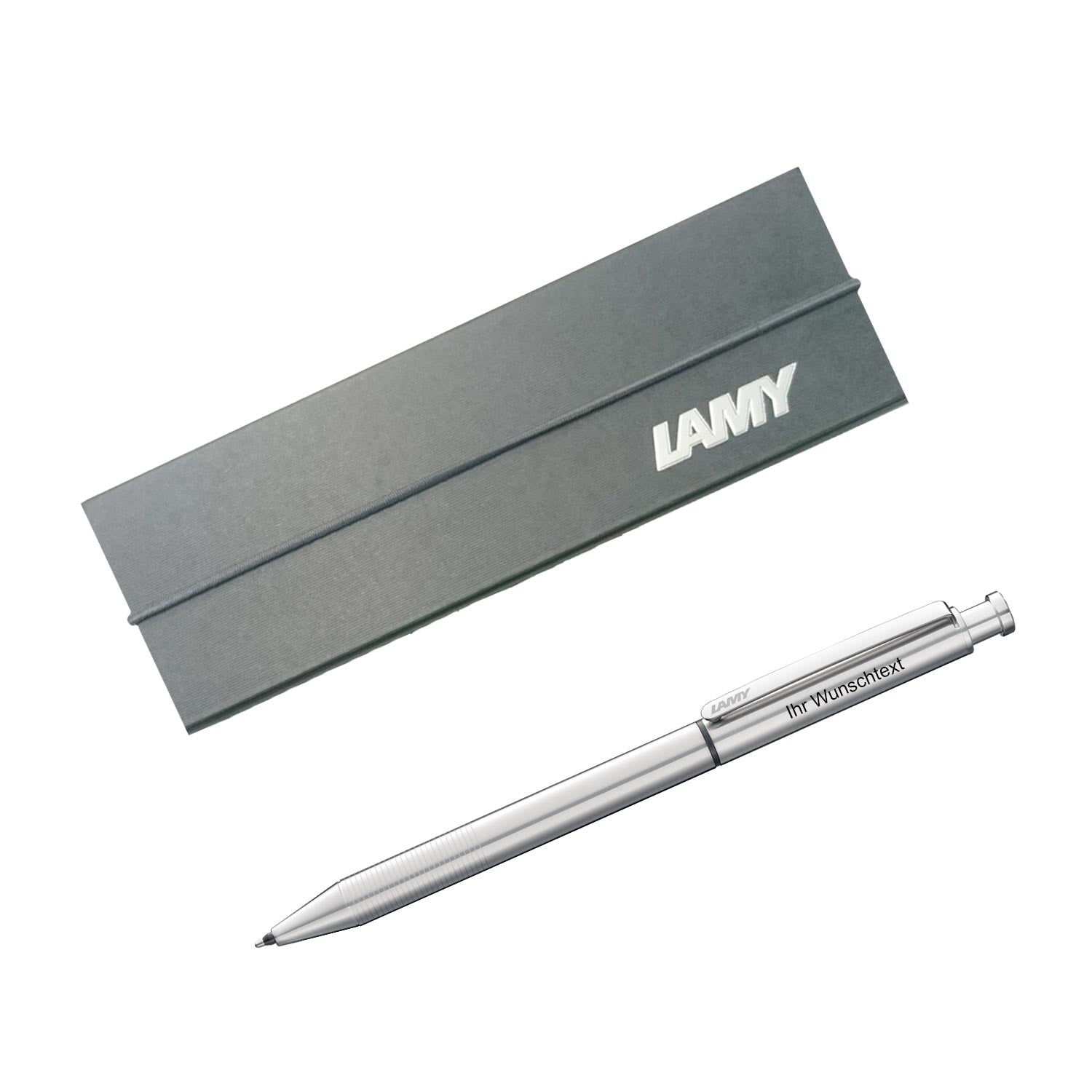 Schlanker Mehrsystemschreiber in elegantem Design - der twin pen st 645 matt inkl. Laser-Gravur von Lamy vereint elegantes Design und modernes Schreibgerät in einem. Mit seiner Drehmechanik bietet er Schreibkomfort und die Wahl zwischen Kugelschreiber und Druckbleistift. Ausführung mit massivem, abgefedertem Clip und Radiergummi unter abziehbarem Drücker.