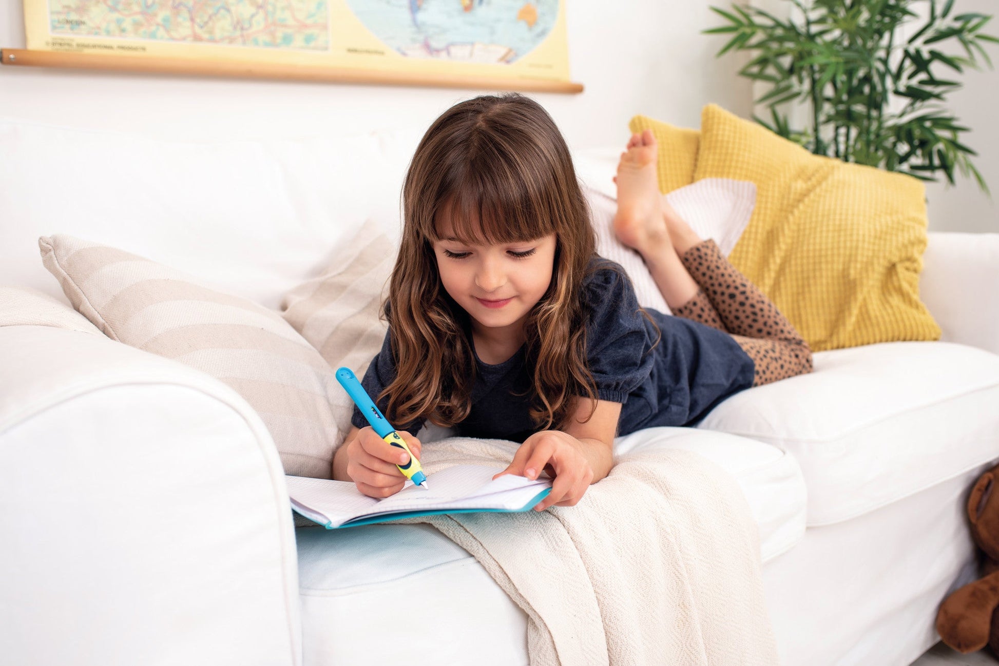 Der Füller ist die 4. Stufe des vierstufigen griffix® Schreiblernsystems - die Königsklasse beim Schreibenlernen. Mit dem Füller lernen die Kinder das formgerechte Schreiben und optimieren die flüssigen Schreibbewegungen. Die druckstabile Edelstahlfeder für Schreibanfänger gleitet dabei leicht über das Papier und hinterlässt ein schönes und sauberes Schriftbild. Das große Tintensichtfenster des Füllerhalters bietet optimale Kontrolle des Tintenstandes. Das ergonomische Design der griffix® Schreibgeräte fördert die richtige Handhaltung für natürliches und lockeres Schreiben in jeder Lernphase, denn alle Stifte – vom Wachsschreiber über den Bleistift und Tintenroller bis hin zum Schulfüller - sind optimal auf die individuelle Lernstufe des Kindes angepasst. Dank des einheitlichen Griffmulden-Konzepts (Zangengriff) muss das Kind bei dem aufeinander aufbauenden Schreiblernsystem die Handhaltung von Stufe zu Stufe nicht mehr ändern. Das Gute-Laune-Gesicht zeigt, dass der Stift richtig gehalten wird. griffix® unterstützt die Kinderhand damit optimal im gesamten Schreiblern-Prozess - von Anfang an. Mit griffix® macht das Schreibenlernen Spaß.