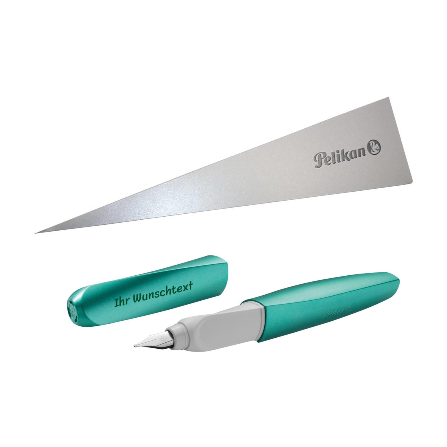 Der Füllhalter Pelikan Twist P457 vereint modernes Design und Funktion. Der Füllhalter ist im metallic grünen Farbton gehalten und mit ihrer individuellen Lasergravur versehen. Dieser praktische Füller hat ein trendiges, gedrehtes Design, das Komfort sowie einen zuverlässigen Schreibkomfort bietet. Er ist für Rechts- und Linkshänder geeignet.