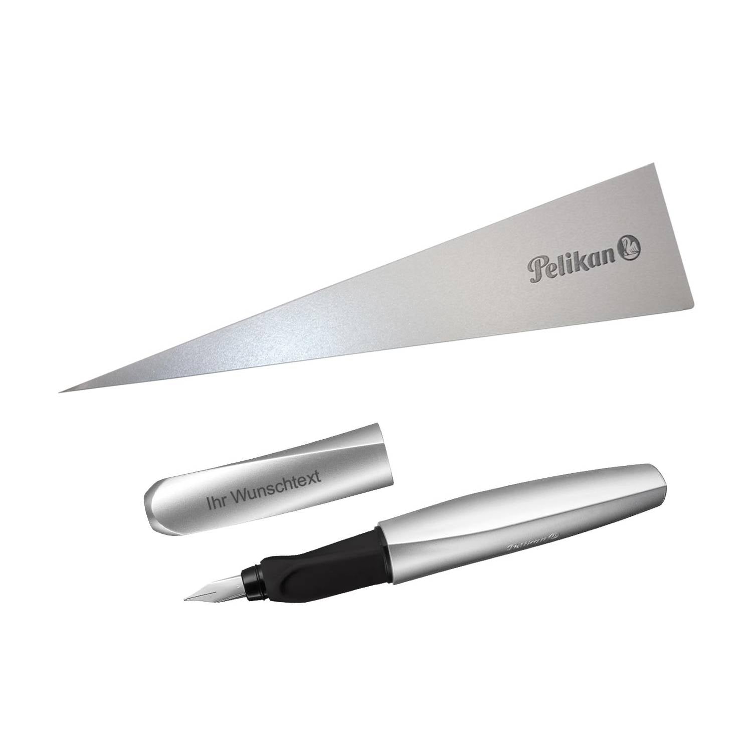 Der Füllhalter Pelikan Twist P457 vereint modernes Design und Funktion. Der Füllhalter ist im silbernen Farbton gehalten und mit ihrer individuellen Lasergravur versehen. Dieser praktische Füller hat ein trendiges, gedrehtes Design, das Komfort sowie einen zuverlässigen Schreibkomfort bietet. Er ist für Rechts- und Linkshänder geeignet.